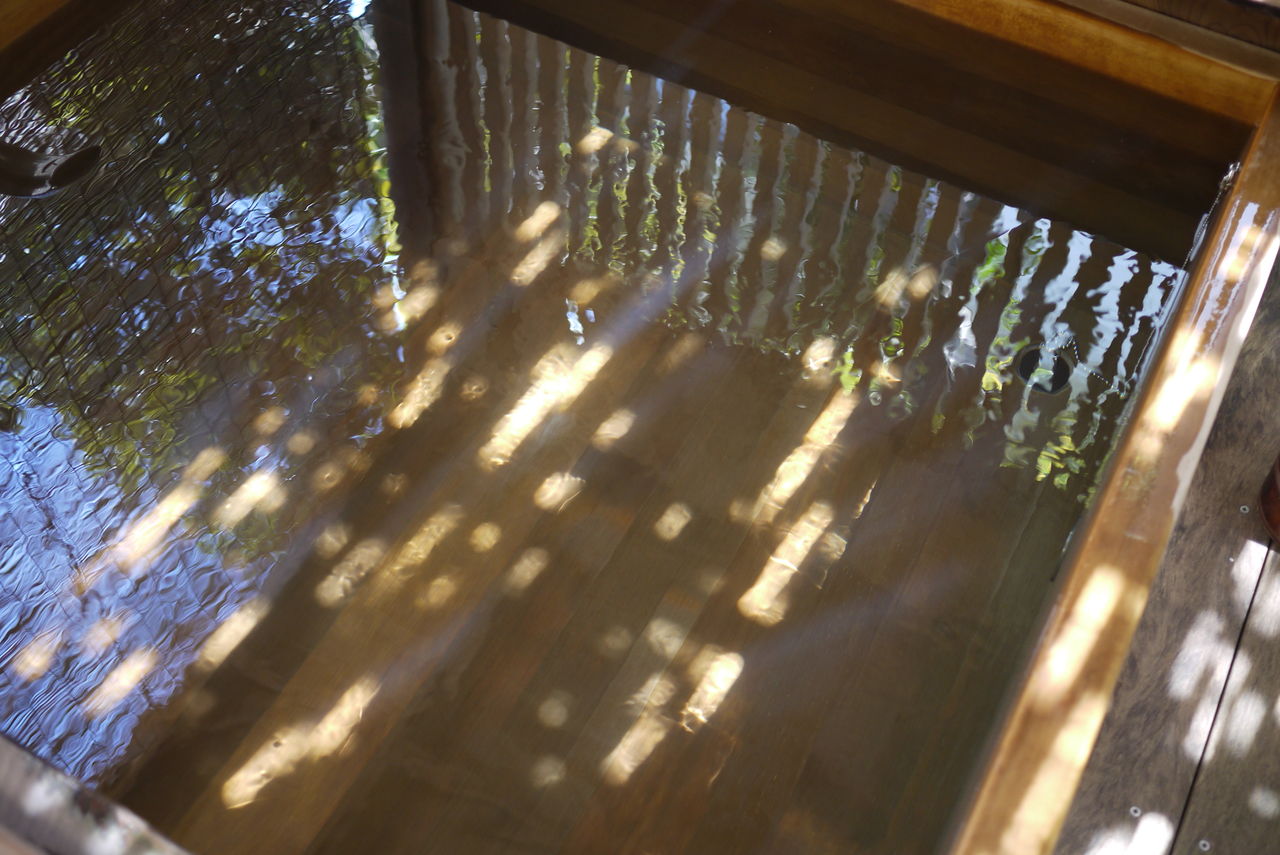 朝の陽ざしを利用して、部屋の露天風呂を撮影しました。