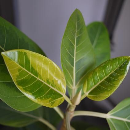 観葉植物の葉も水を流して1枚ずつお手入れ。