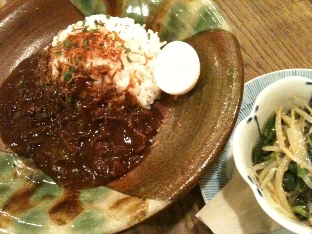 モロヘイヤともやしのお惣菜とハヤシライスです。