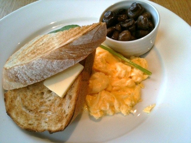 柔らかすぎるスクランブルエッグと卵焼きの中間位の微妙な焼き加減!