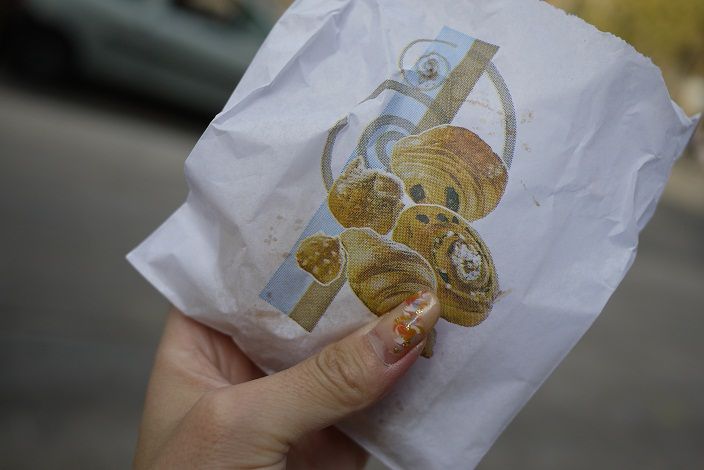 メインストリートの手前にあったパン屋さん入りました。とにかく何かパンを!