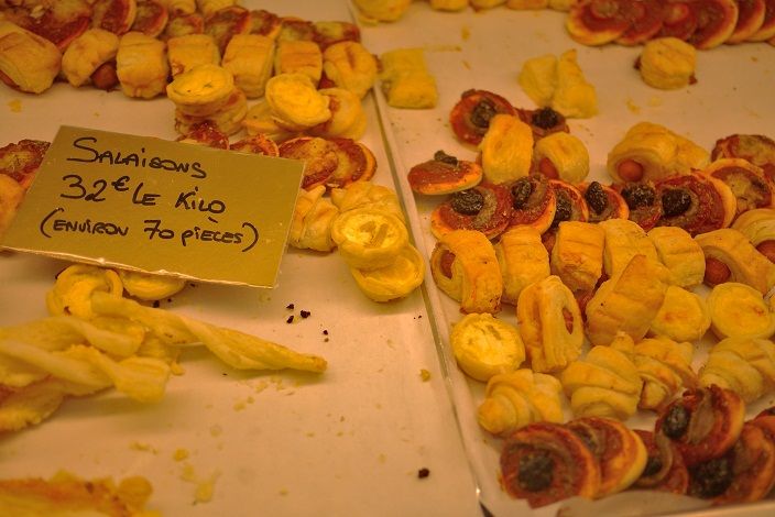 私がどう買えばいいかキョロキョロしていると、「マダム」と店員さんが声をかけてくれました。欲しい種類は5種類くらい。いくつか種類があったので、1つ1つを指差して「ウイ」と言います。マダムな店員さんは、私がガラス越しに指をさしたもの、外すことなくすべてをキャッチしてくれました。お互いに「やったね!」と笑顔になり、先ほどまでの悲惨な出来事がすべてご破算ということで。(笑)