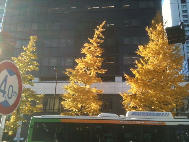 正面のビルの窓に、他のビルが反射しているのがみえて、