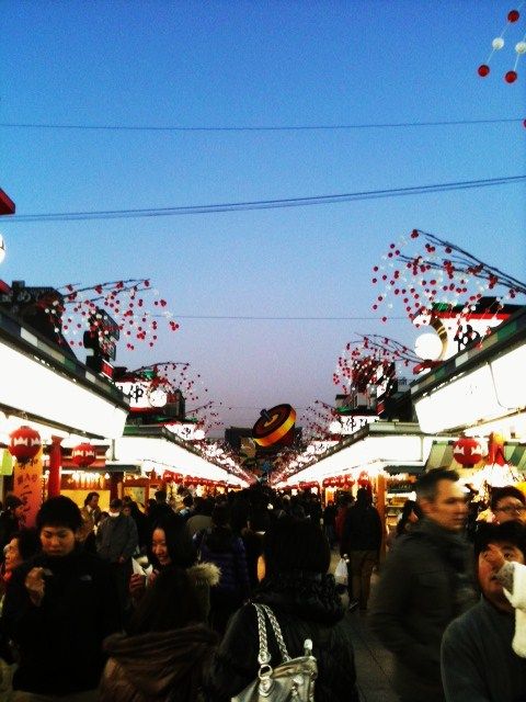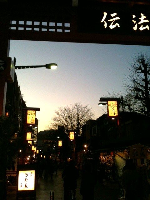 17時頃に行ったので、空の色と仲見世商店街の遠近法が