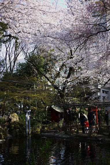 「愛宕神社の池と桜」。