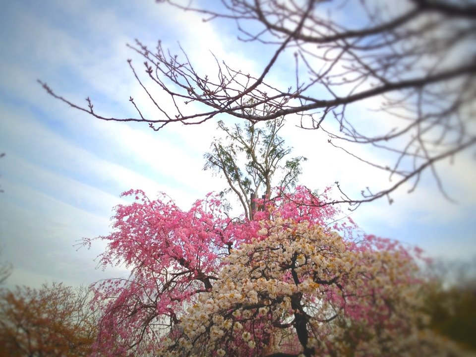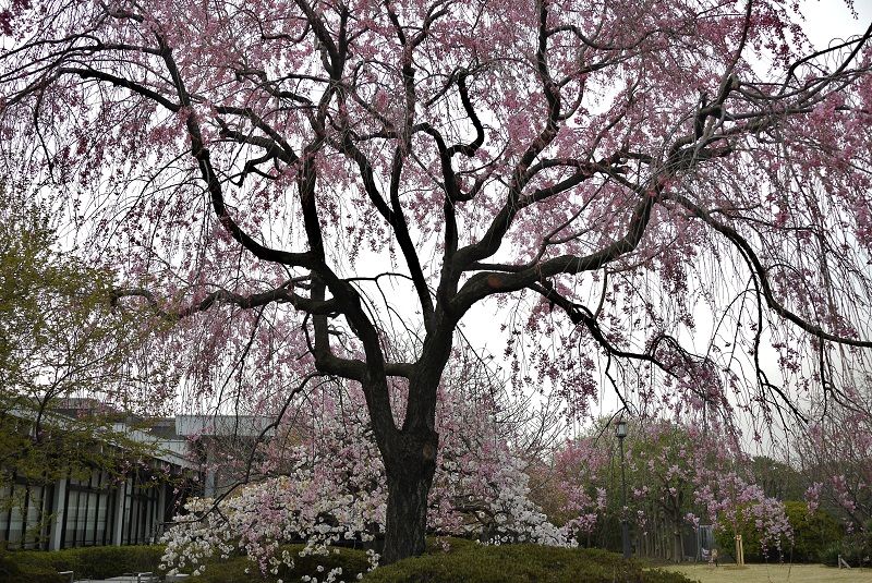 その後ろに、見事なしだれやまざくらと大寒桜のコラボを発見しました。