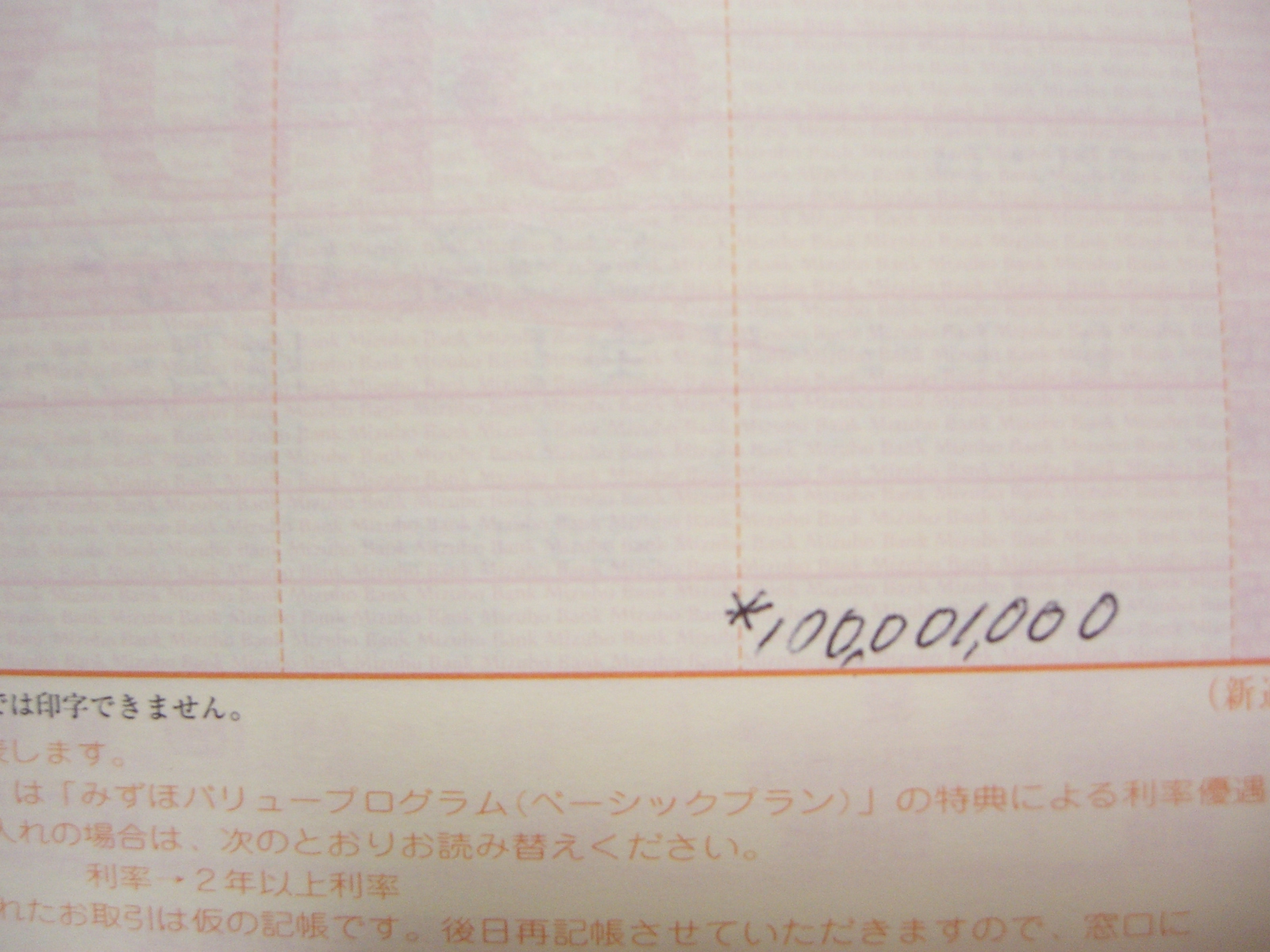 銀行の貯金通帳の一番最後のページに書いた数字を