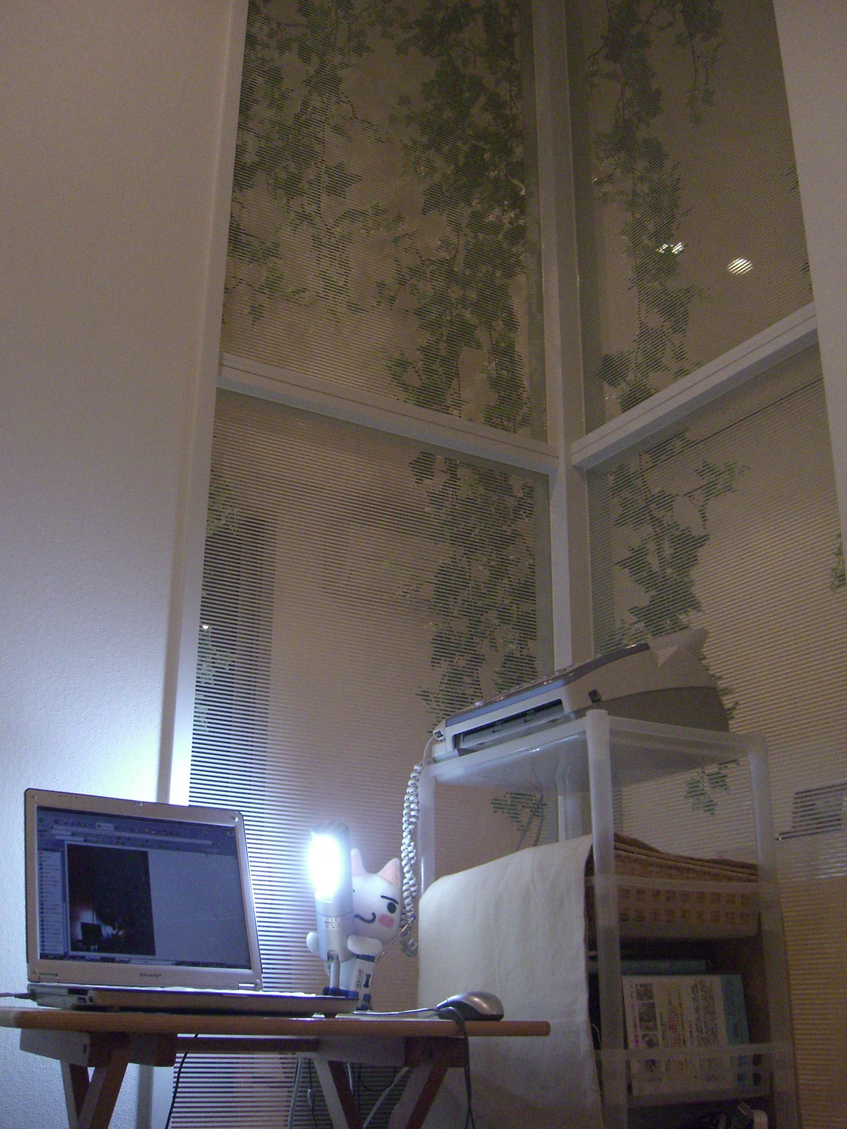 部屋の隅っこに、電話を持ってきて、机を横に置きました。