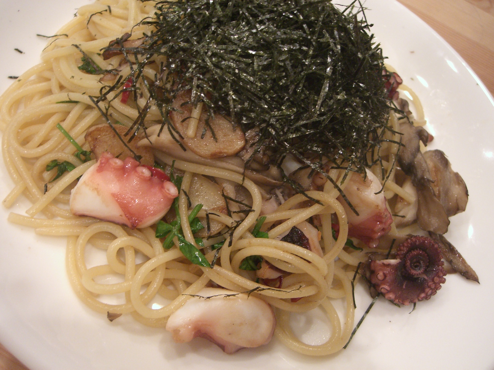 【タコと、まいたけ、ルッコラのペペロンチーノ】
