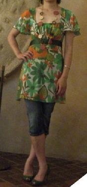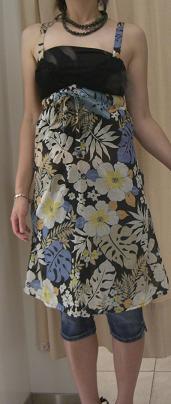 ワンピースに、カプリ丈のデニムをあわせました。
