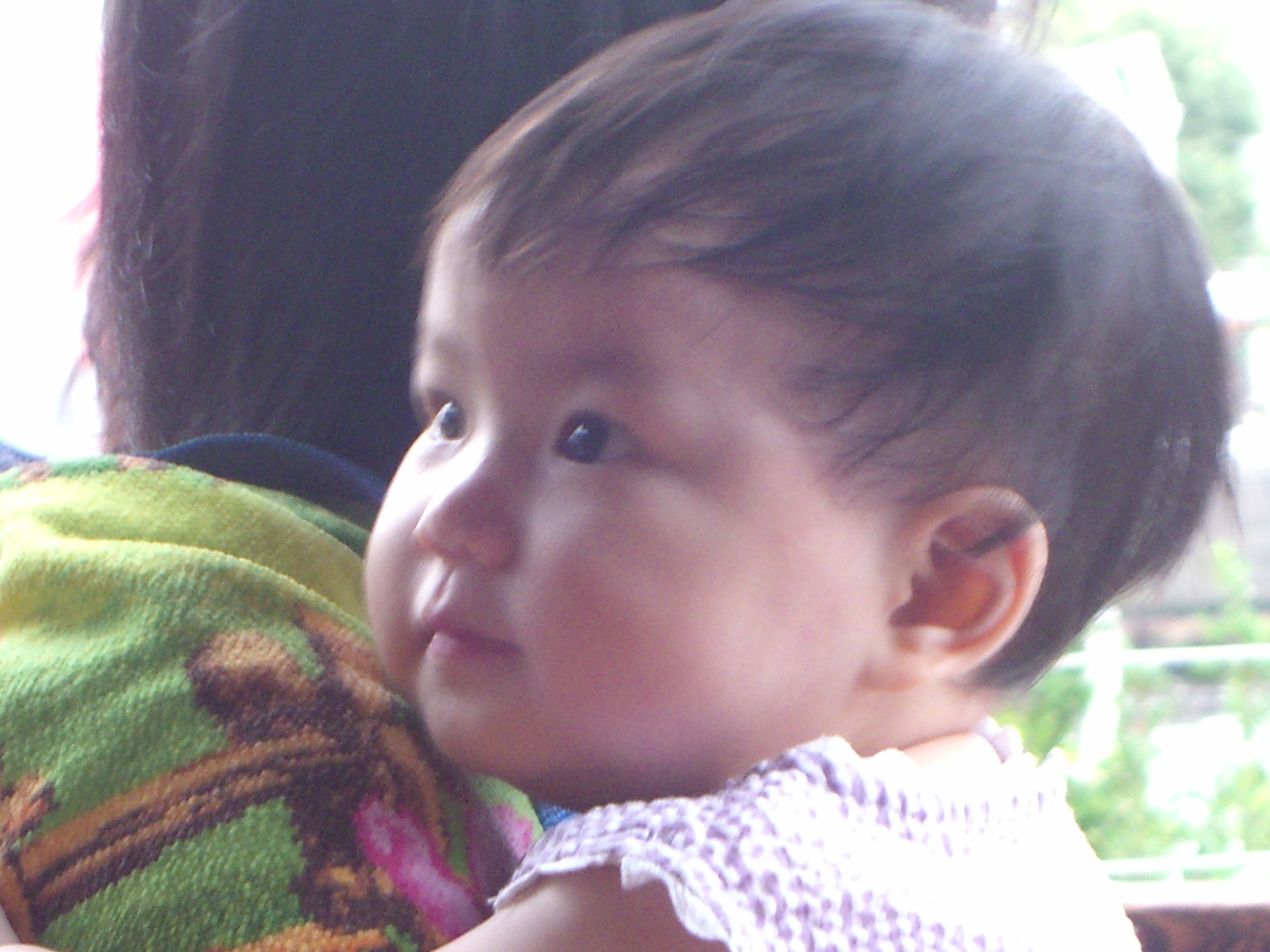 そして、私のちょうど前に、ダッコされて、ママの肩に頬を寄せた