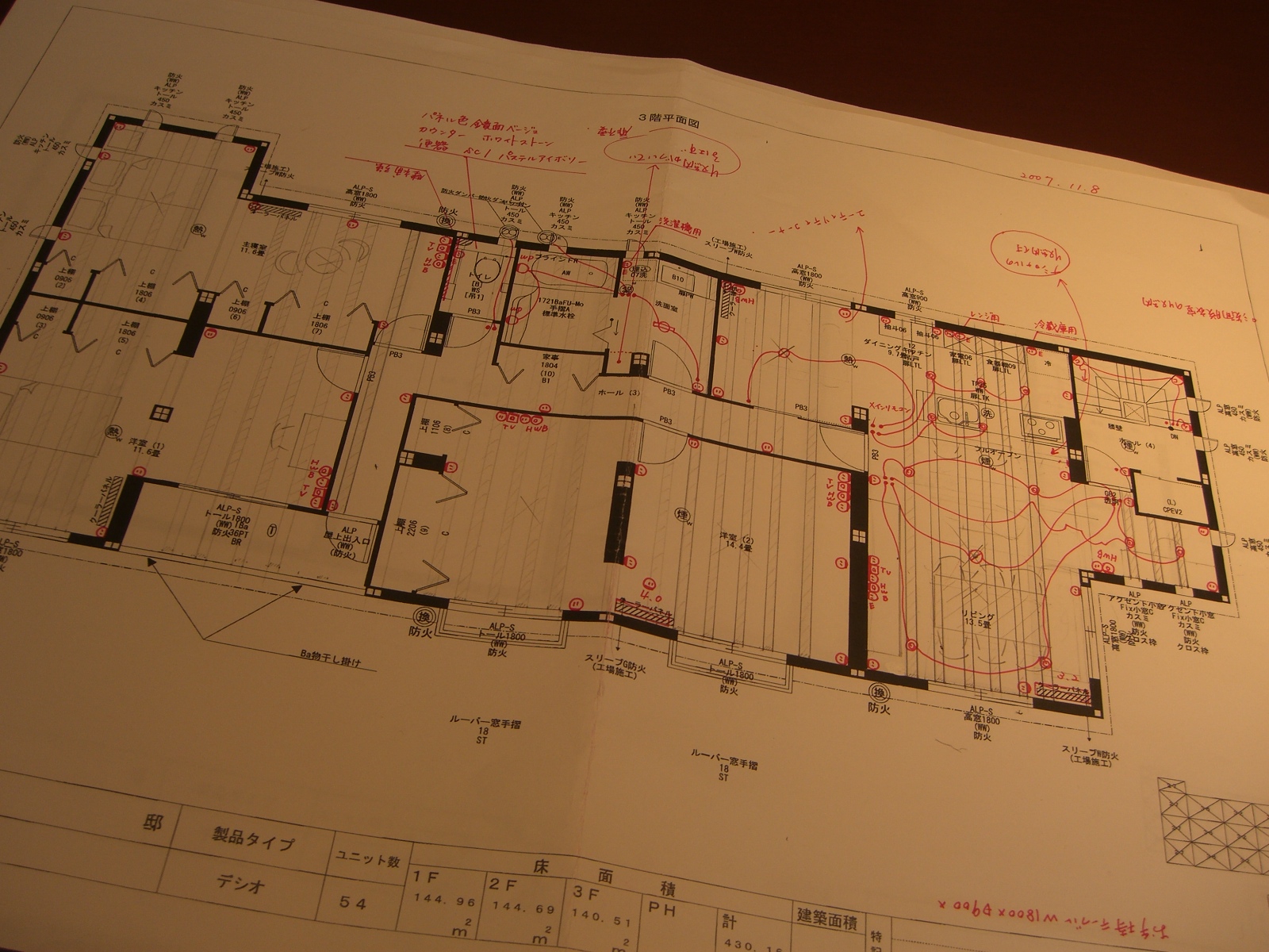 設計図に、ライトの位置を書きこんでいく作業。