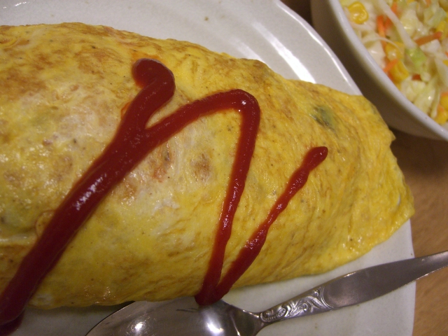 夜ごはんは、オムライスとコールスローを作ってもらいました。