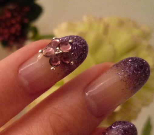 またまた、薬指だけにワンポイントラインストーンを入れました