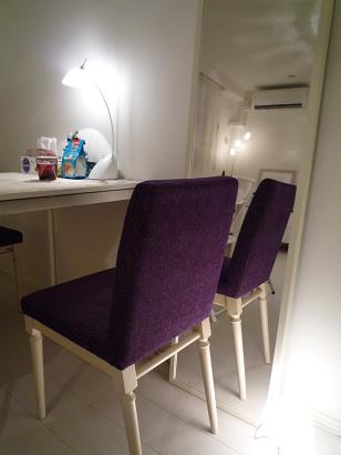 このお部屋のアクセントカラーの紫のこのチェアは、
