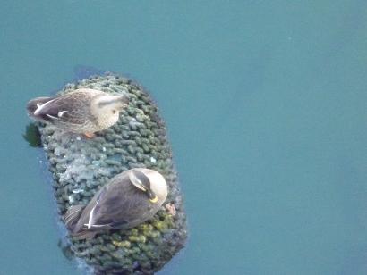 冬なので、カモ系の鳥たちが、河に飛来してきます。