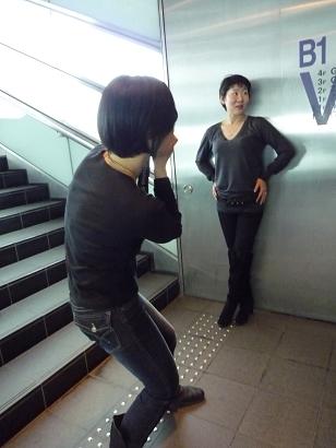 ここで、撮影しましょう!」と言って、地下鉄へ下りる通路で