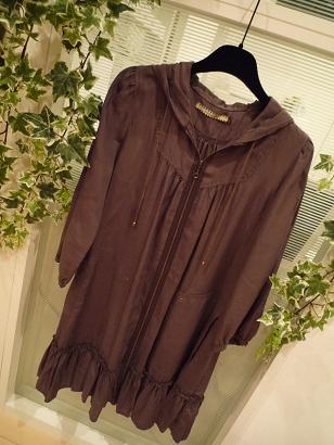 裾が、フリルになっているのと、フードが付いているところが