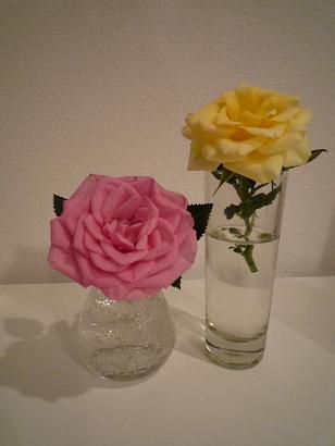 ベランダのバラをミニ花瓶に入れて寝室に飾ってみました