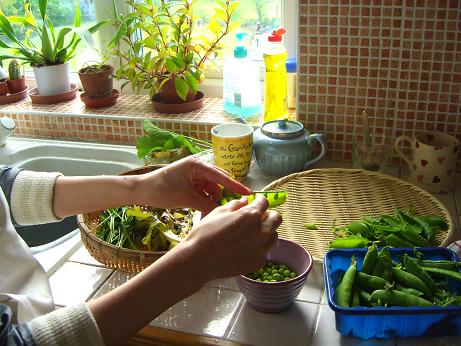 ご近所から頂いたという、グリーンピースです。