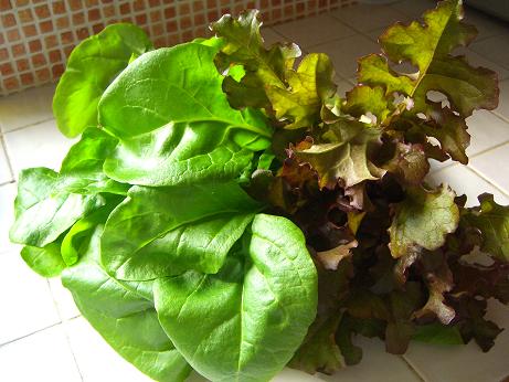 レタスとほうれん草を収穫しました。
