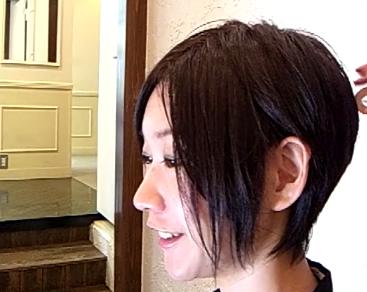 横から見ると、ヘアスタイルがよくわかります。