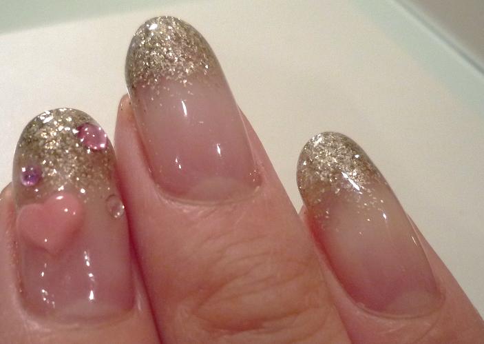 下地は、ピンクのハートに合うようなラメのグラデーションを。