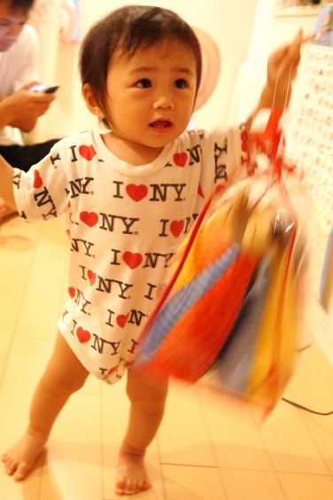 私のプレゼントの袋を見て、ゆめかちゃんが「これで遊ぶ!!!」