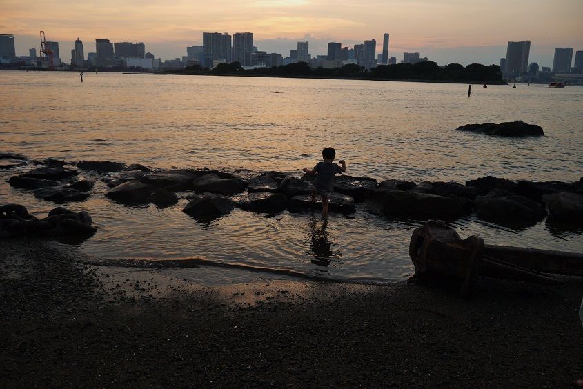 お台場海浜公園で、サンセットを待ちながら、遊びました。