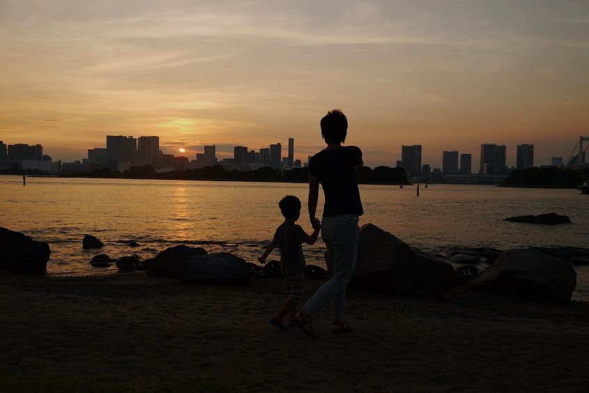 夕陽を背景に、親子写真を撮りたかったので、撮らせてもらってありがとう!