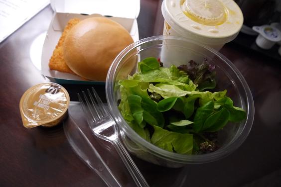 夕飯を食べていなかったので、マクドナルドでFOFとサラダ、オレンジジュースのセットにしました。サラダのバルサミコソースがお気に入りです。