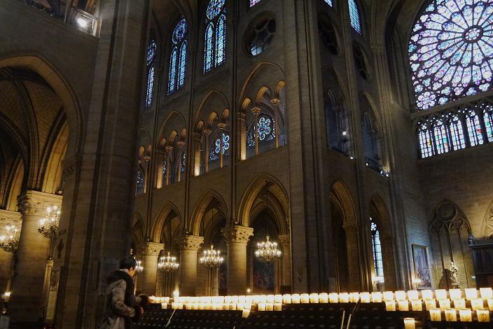 座席に座って、ノートルダムの空気を吸い込みます。教会も場所によっては、ジメジメしていて、空気が淀んでいる感じを持つところがありますが、ここは何かが違う。