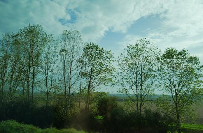 Parisのトンネルを抜けて、高速に入っていきました。まだ、あたりはうす暗いです。途中から、日の出が見え始めました。たまたま、東側に座っていたのもあって、ずっと外を眺めていました。