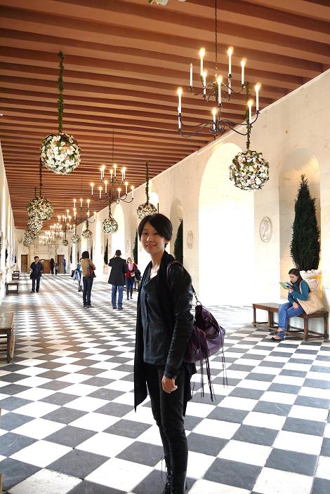 また、少しバスを走らせて、次にシュノンソー城に到着です。ここも、公園が充実しており、紅葉した木々の中を通り抜けると、お城が急に出現しました。16世紀創建。初期ルネッサンス様式のお城です。