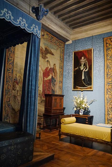 お城の中は、フランソワ1世の寝室や、ルイ14世の寝室が見られます。寝室ですから、ベッドが置いてあって、昔の人の平均身長は160センチくらいだったというから、少し小さめでかわいらしいです。