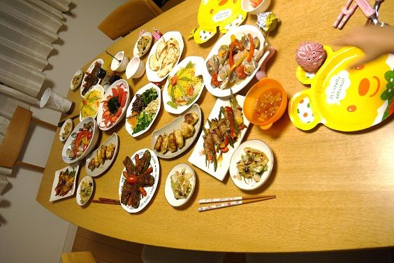 家族みんなでお祝いです。お嫁さんも沢山の料理を作っていました。