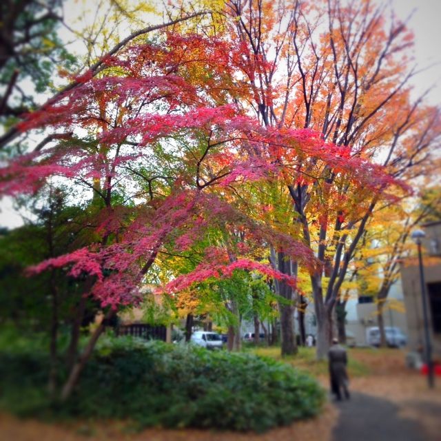 キャンパス内の木々はすっかり紅葉していました。グラデーションが、美しい!