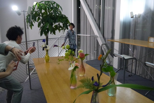 クライアントの華道の先生に花生けをオファーしました。もちろん、そんな花の集め方をされて生けるなんて、生まれて初めてのようです。(笑)