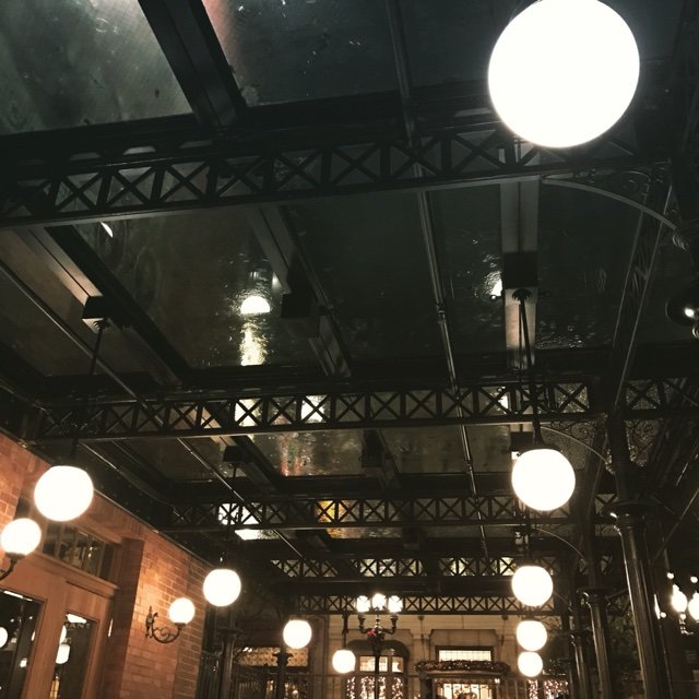 あのクマのところか・・・!とすぐにわかりましたが。レストランはその付近にある、NY DELIをご指定されました。「テラス的がいいですね!」ということになりまして、雨は降っているけれど、風がないのでそこまで寒さはありません。ガラスのシーリングから見える雨の流れも美しい場所でした。