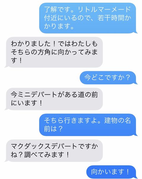 次のクライアントさんとも、待ち合わせのやりとりからです。
