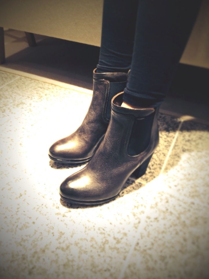 そうしたら、先ほど試着したデザインと結構似ているもので、幅もOKそうなものを発見。むしろ、先ほどのよりも、色の感じがダークブラウンでいいじゃないですか。履いてみたら、ピッタリ来ました!悩むときは、悩むけど、ピッタリくる時は、「キタ!」となるんですよね。洋服って、そう言うときに買うもんだと、私は思っている方です。