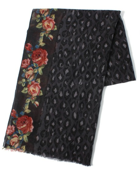 そして、「巻物は大人として、是非1枚!」とアンテナを立て、4軒目のお店で、アニマルプリントと花柄プリントがあしらわれたものを発見! 花柄部分を多めに見えるようにして、さらっと巻いてみたら、「お!」となっていました。