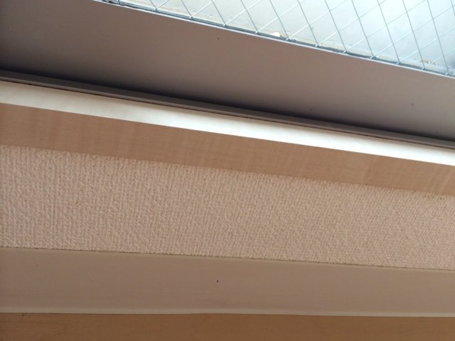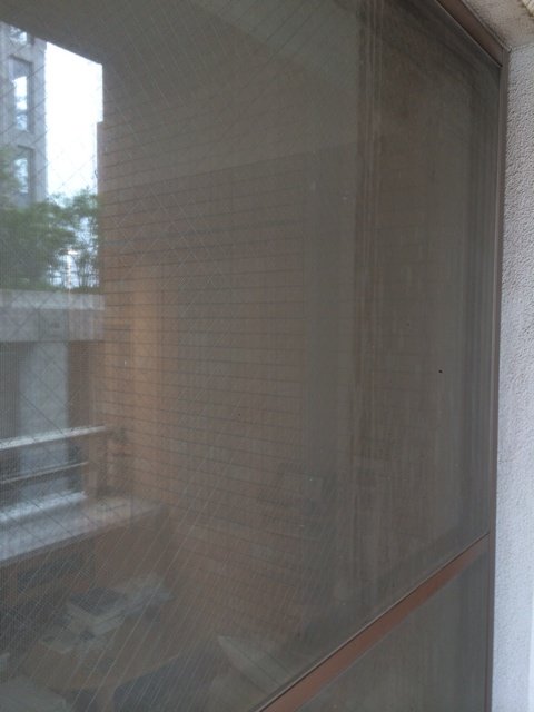昨年の夏にスクイジーをした以来とのことで、窓、網戸、レールの溝の1年分の汚れを落とします。ベランダ床の隅のほうには、泥が付着していたので、ブラシで擦り取ります。その間に、カーテンを洗濯してもらうことにしました。