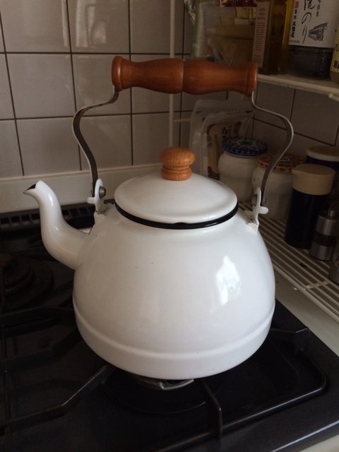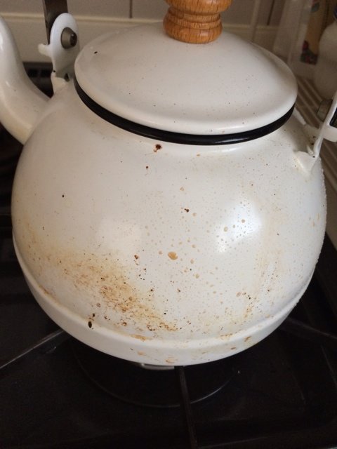 「おじゃましまーす!」で、真っ先に目に入ってしまった、白いやかん。焦げが取れていないようです。クライアントさんいわく、「擦ったんですけど、取れなくて~」と。