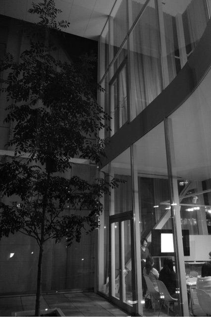 会場への最寄り駅を降りたら、満月が見える東へと歩き、右へ曲がるとSHIBAURA HOUSEの会場へ辿りつきます。ガラス張りのSHIBAURA HOUSEから、欠け始めた皆既月食が見えると歓声が上がり、会場は興奮と神秘的なムードに包まれました。