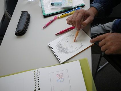 デッサンしていただいた絵を見せながらお話してもらいました。
