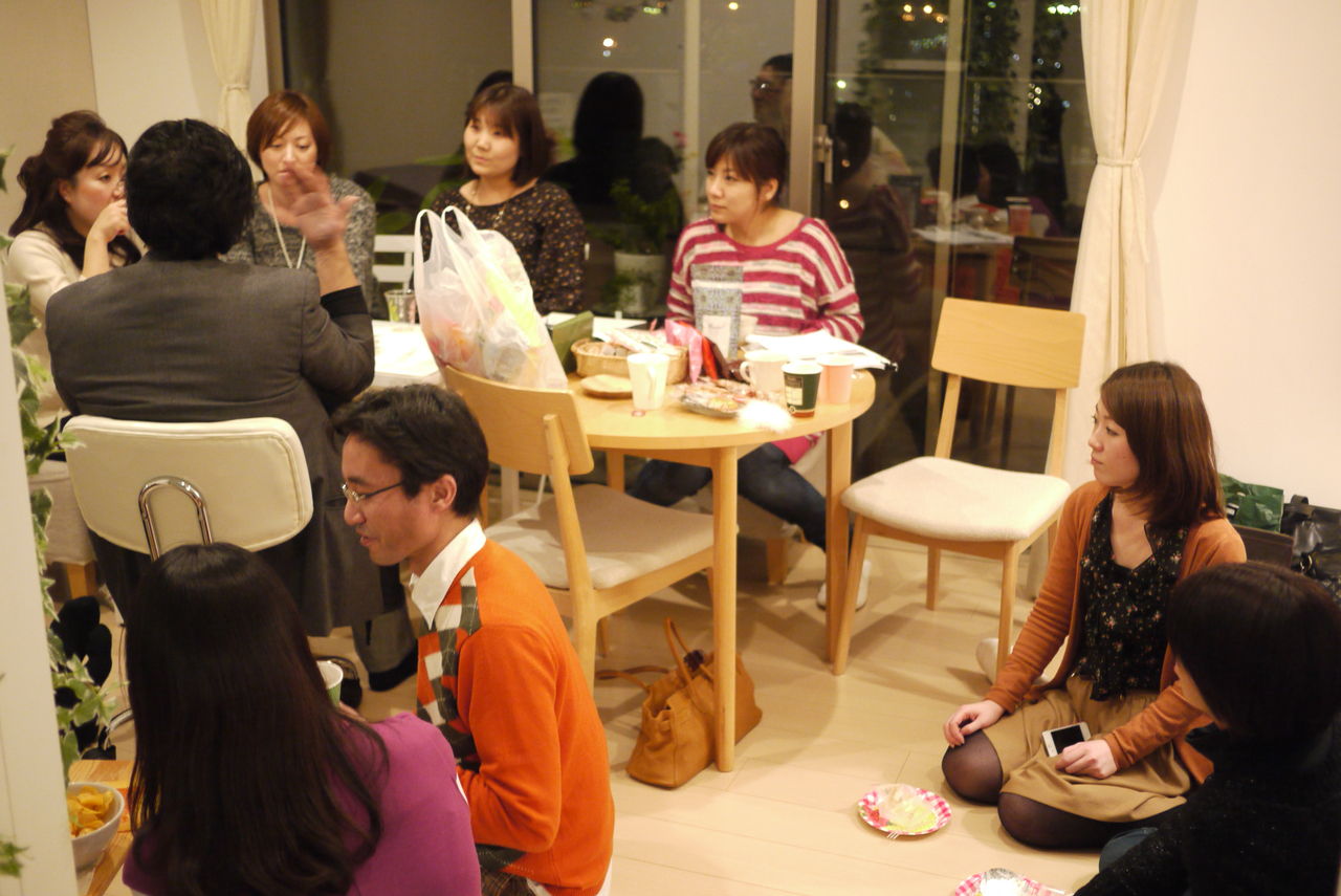 一人一人とセッションをしている。一対一では、約1時間の間に随分よく話すわけです。でも、こうして全員で集まると、私とAさん、私とBさんとがあった場合、AさんとBさんとが話している。なんとも不思議です。単に、私は「人と人とがつながる」場を作ることが多い人だなあと自分を客観視しました。