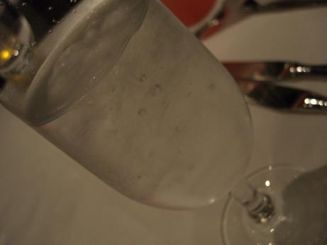 途中、「ガスウォーターと普通のお水どちらかご用意しますか?」
