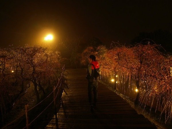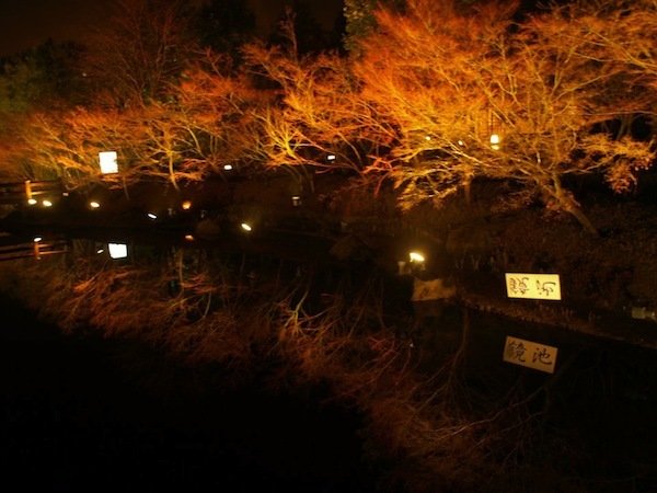 チャペルまで水面を這うかの様に散りばめられるイルミネーション。