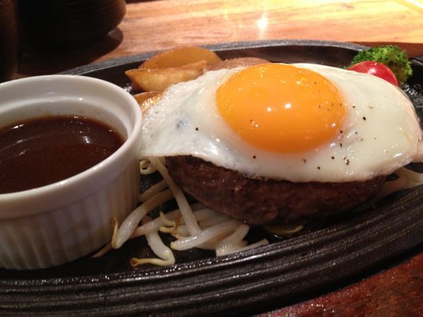 目玉焼きがデカすぎて肝心なハンバーグが見えない...